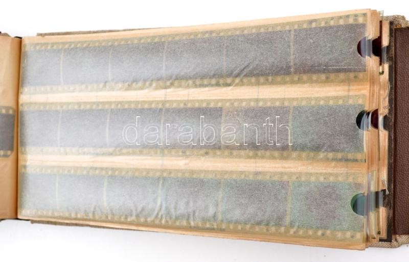 cca 1944 Privát felvételek negatív gyűjteménye, 2 db negatívtartó albumba rendezve, sok helyszínen, változatos témákról készült felvételek, cca 1.440 db szabadon felhasználható, vintage negatív, 24x24 mm és 24x36 mm