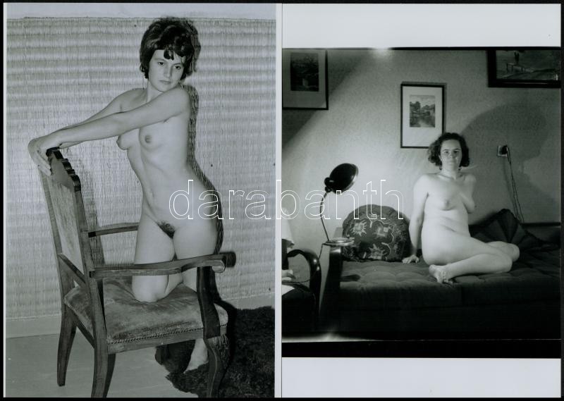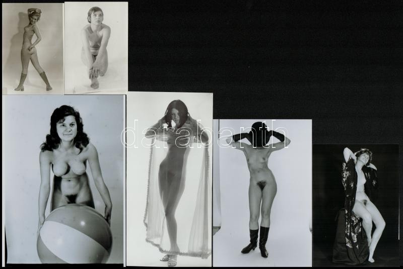 cca 1970 és 1977 között készült, szolidan erotikus felvételek vegyes válogatása, 5 db vintage negatív (6x6 cm) + 8 db vintage fotó, és/vagy mai nagyítás, a papírképek és a negatívok között nincs összefüggés, 9x6 cm és 25x18 cm között