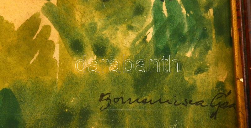 Beschreibung: Bornemissza jelzéssel: Park. Akvarell, papír, üvegezett keretben, 35×27 cm