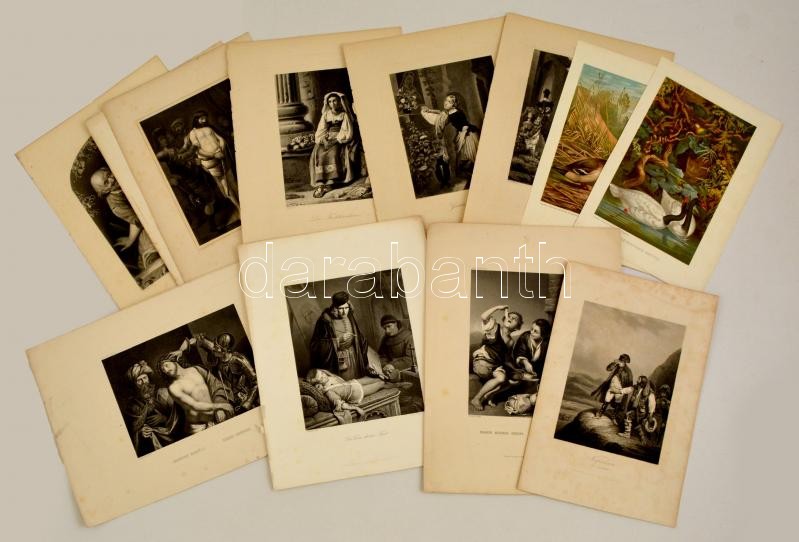 Beschreibung: 12 db illusztráció különféle témákban (Napóleon, tőkés réce, stb.), acélmetszet/litográfia, papír, különböző méretben