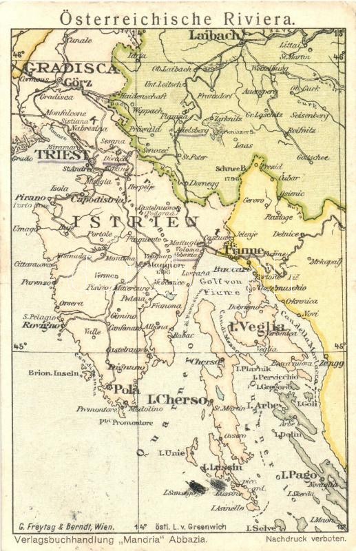 Österreichische Riviera. Istrien, Triest, Fiume, Pola / Map of the Aus... https://www.darabanth.com/de/330-Fernauktion/330.0/Ansichtskarten/Landkarte~2000070/Osterreichische-Riviera-Istrien-Triest-Fiume-Pola-Map-of-the-Austrian-Riviera-Trieste-Rijek~II1844010