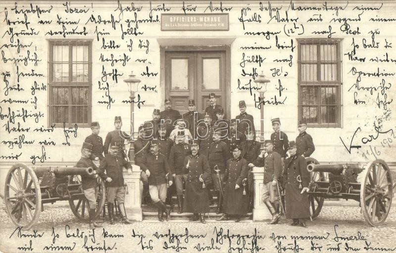 1902 Nagyszeben, Hermannstadt, Sibiu; Cs. és kir. 36. tüzérségi ezred tiszti étkező épülete / Officiers-Menage des k.u.k. Divisions Artillerie Regiments No. 36. group photo with military officers (EK)