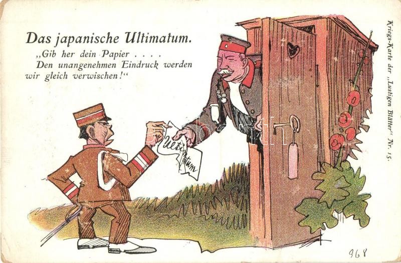 Das japanische Ultimatum. Kriegs-Karte der Lustigen Blätter Nr. 15. / ... https://www.darabanth.com/de/330-Fernauktion/330.0/Ansichtskarten/Militaria~2000059/Das-japanische-Ultimatum-Kriegs-Karte-der-Lustigen-Blatter-Nr-15-Russo-Japanese-War-art-postca~II1843948