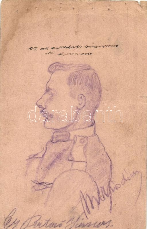 "Ez az ezredes sógorom aki ily szomorú" Első világháborús kézzel rajzolt osztrák-magyar katonai tábori posta levelezőlap / WWI Austro-Hungarian K.u.K. military field post with hand-drawn colonel (b)