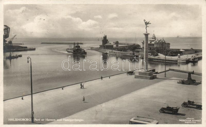 Helsingborg, Hälsingborg; port, pavilion, ship, automobile https://www.darabanth.com/de/330-Fernauktion/330.0/Ansichtskarten/Schweden~2000039/Helsingborg-Halsingborg-port-pavilion-ship-automobile~II833280
