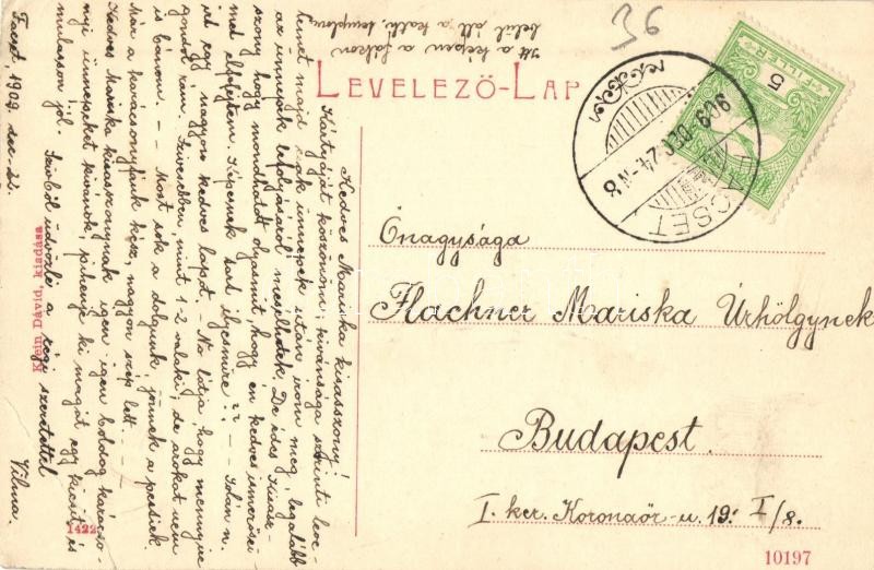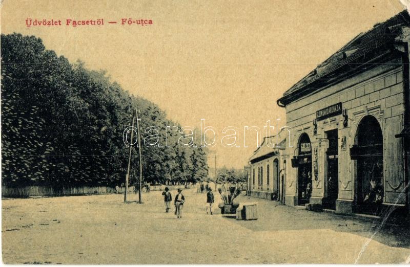 Beschreibung: Facset, Facsád, Faget; Fő utca, Klein Dávid üzlete és saját kiadása. W. L. (?) 1422. / main street, publisher's shop (EB)