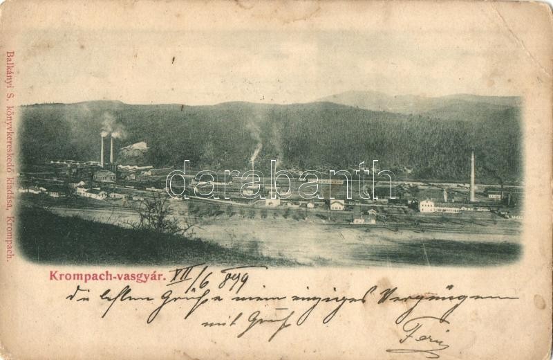 1899 Korompa, Krompach; vasgyár. balkányi S. kiadása / iron works, fac... https://www.darabanth.com/de/330-Fernauktion/330.0/Ansichtskarten/Slowakei~2000006/1899-Korompa-Krompach-vasgyar-balkanyi-S-kiadasa-iron-works-factory-EB~II1840560