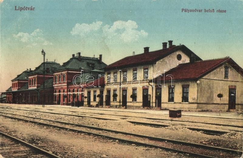 Beschreibung: Lipótvár, Újvároska, Leopoldov; Vasútállomás, pályaudvar belső része / Bahnhof / railway station (EK)