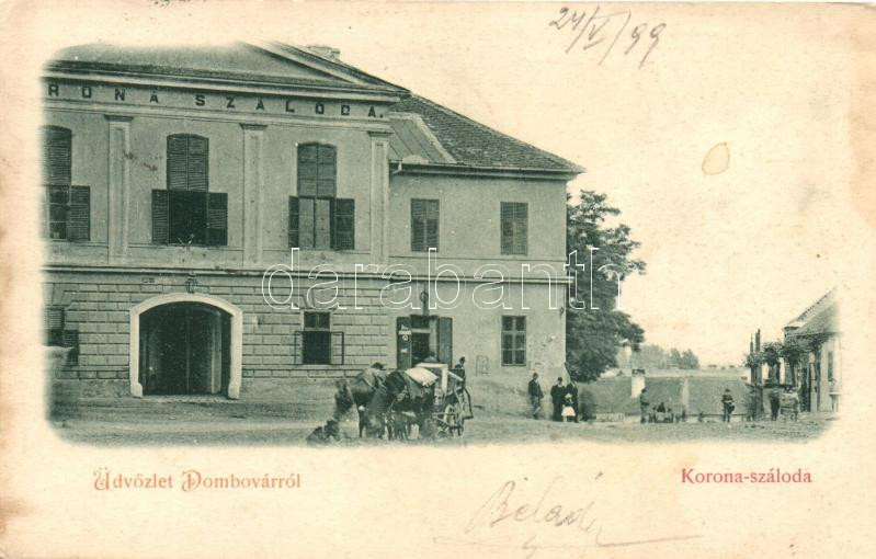 1899 Dombóvár, Korona szálloda, szekér https://www.darabanth.com/de/330-Fernauktion/330.0/Ansichtskarten/Ungarn~2000004/1899-Dombovar-Korona-szalloda-szeker~II1375906