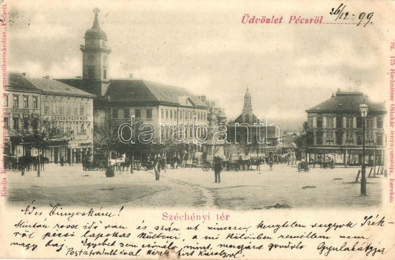 1899 Pécs, Széchenyi tér, Tauszig Ármin, Winter Károly, Günsberger Mór... https://www.darabanth.com/de/330-Fernauktion/330.0/Ansichtskarten/Ungarn~2000004/1899-Pecs-Szechenyi-ter-Tauszig-Armin-Winter-Karoly-Gunsberger-Mor-uzlete-Takarekpenz~II1841417