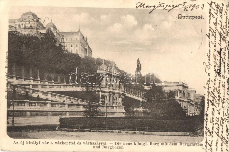 Beschreibung: 1903 Budapest I. Királyi vár, várkert és várbazár. Ganz Antal 65. (EK)