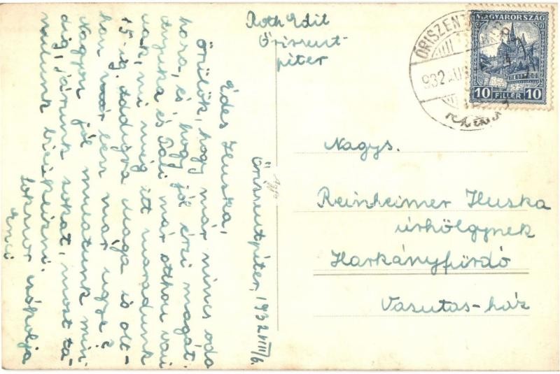 Beschreibung: 1932 Őriszentpéter, falu részlet a Zala fürdővel. photo