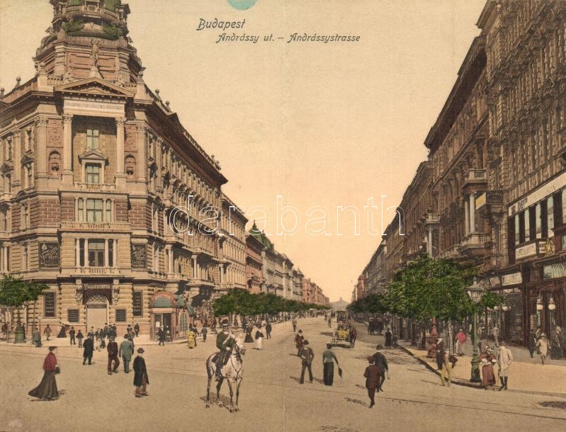 Budapest VI. Andrássy út, Fonciere pesti Biztosító Intézet, Takarékpén... https://www.darabanth.com/de/330-Fernauktion/330.0/Ansichtskarten/Ungarn~2000004/Budapest-VI-Andrassy-ut-Fonciere-pesti-Biztosito-Intezet-Takarekpenztar-uzletek-lovas-~II1758371