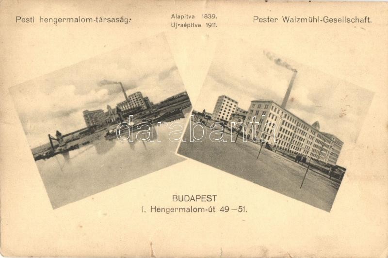 Beschreibung: Budapest XI. Hengermalom út, Pesti hengermalom-társaság, kiadja Klösz György és Fia (szakadás / tear)