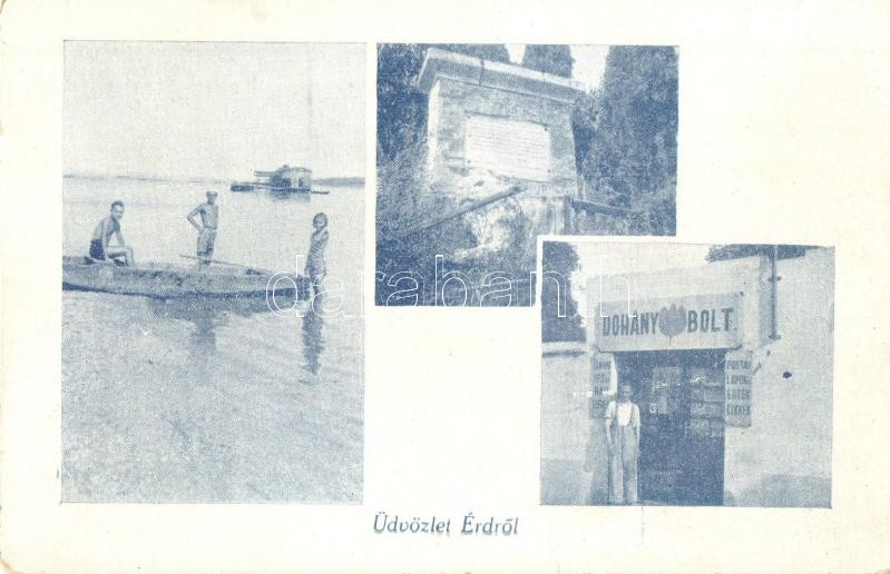 Érd, csónakázók, hajómalom (?), dohánybolt, üzlet. Pásztor Lajos kiadá... https://www.darabanth.com/de/330-Fernauktion/330.0/Ansichtskarten/Ungarn~2000004/Erd-csonakazok-hajomalom-dohanybolt-uzlet-Pasztor-Lajos-kiadasa-EK~II1843986