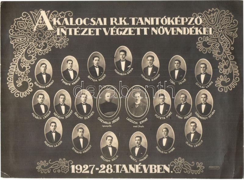 Kalocsa, a kalocsai Római katolikus tanítóképző intézet 1927-28. tanévben végzett növendékei, tabló (20 cm x 14,5 cm); Madarász fényképészeti műterméből. Studentika (non PC) (EB)