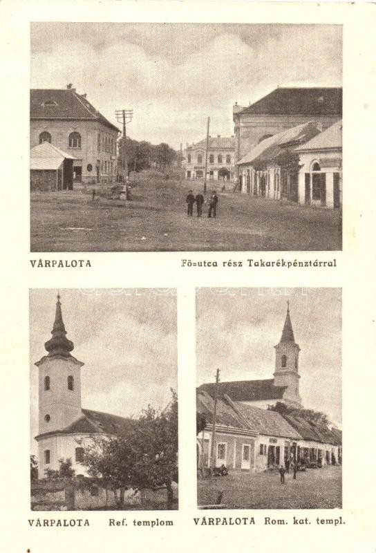 Várpalota, Fő utca, Takarékpénztár, Református templom, Római katoliku... https://www.darabanth.com/de/330-Fernauktion/330.0/Ansichtskarten/Ungarn~2000004/Varpalota-Fo-utca-Takarekpenztar-Reformatus-templom-Romai-katolikus-templom-uzlet-Hang~II1843531