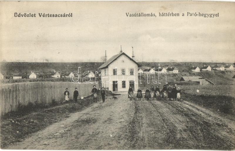 Vértesacsa, Vasútállomás, gyerekek, háttérben a Pató-hegy https://www.darabanth.com/de/330-Fernauktion/330.0/Ansichtskarten/Ungarn~2000004/Vertesacsa-Vasutallomas-gyerekek-hatterben-a-Pato-hegy~II1843540