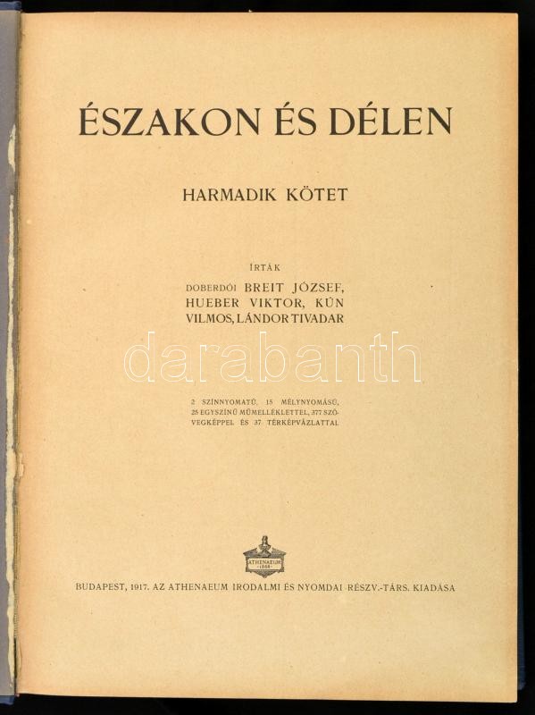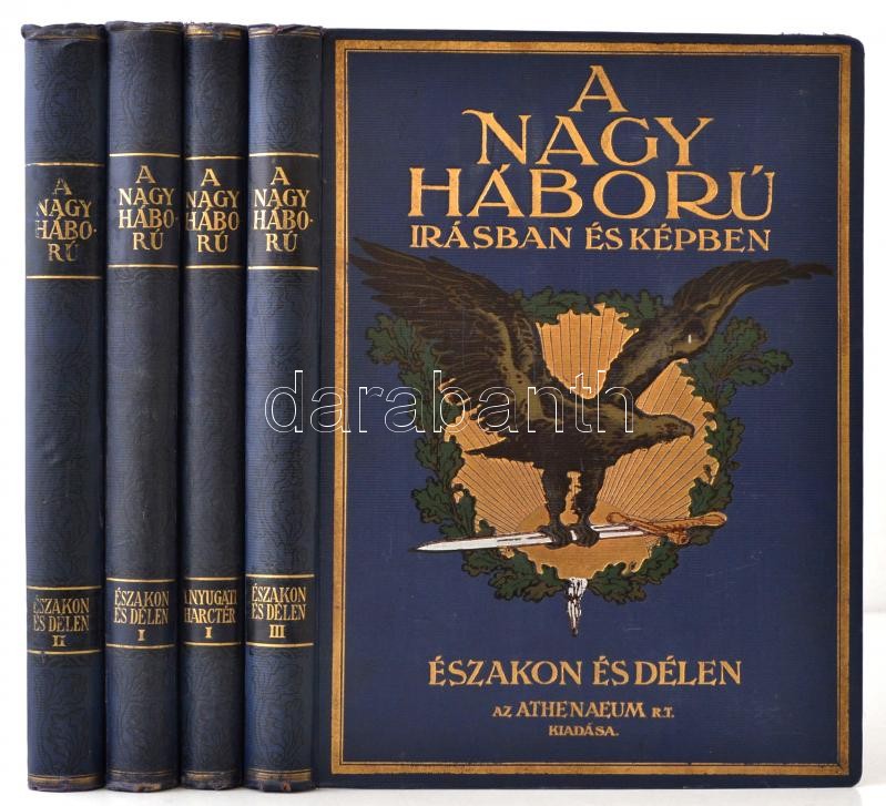 A Nagy Háború írásban és képben 4 kötete: Északon és délen I-III. kötet. A nyugati hadszíntér I. kötet. Szerk.: Lándor Tivadar. Bp.,(1915-1917), Athenaeum. Rendkívül gazdag képanyaggal. Számos színes és fekete-fehér, részben kihajtható táblával, melléklettel, térképpel, több száz szövegközti képpel, térképvázlattal, rajzzal illusztrálva. Kiadói illusztrált, aranyozott egészvászon-kötésben, kissé kopott borítóval, az egyik térkép-melléklet szakadt.