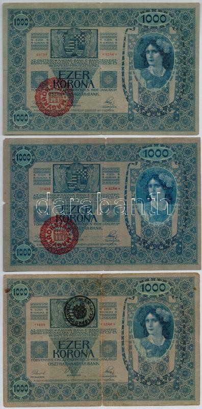 1902. 1000K (2x) piros "MAGYARORSZÁG" körbélyegzővel + 1902.... https://www.darabanth.com/de/330-Fernauktion/330.0/Numismatik/Ungarische-Banknoten~1000006/1902-1000K-2x-piros-MAGYARORSZAG-korbelyegzovel-plus-1902-1000K-fekete-ROMANIA-TIMBRU-SPECIA~II1839495
