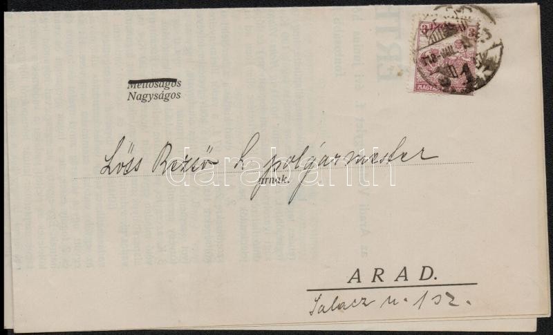 Beschreibung: 1918 Arad, Értesítés az Aradi Vadászegylet évi közgyűlésének fontosabb határozatairól