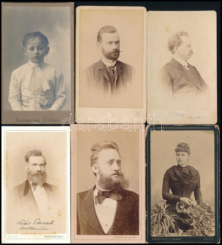 cca 1870-1900 6 db keményhátú műtermi portréfotó, külföldi műtermekből... https://www.darabanth.com/de/331-Fernauktion/331.0/Andere-Sammelgebiete/Foto~500019/cca-1870-1900-6-db-kemenyhatu-mutermi-portrefoto-kulfoldi-mutermekbol-10C3976-cm~II1848651
