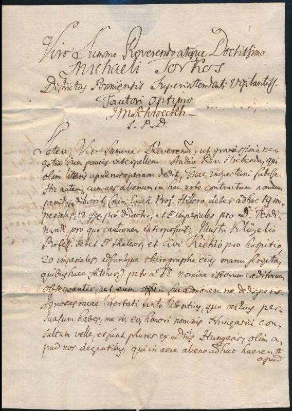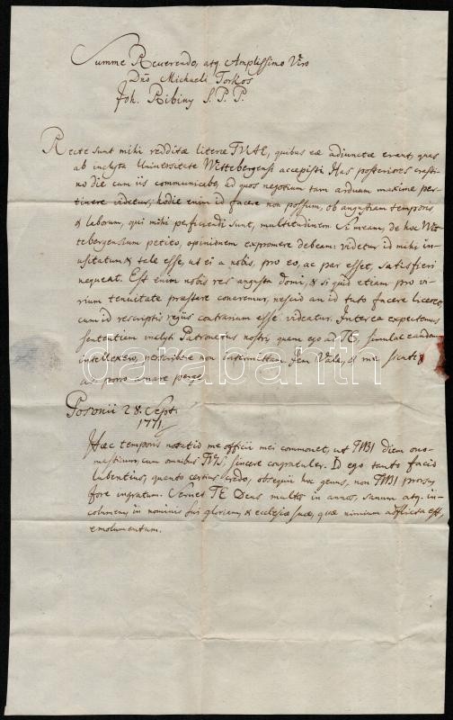 cca 1780 Torkos Mihály (? - 1801) evangélikus püspök, Modori lelkészhe... https://www.darabanth.com/de/331-Fernauktion/331.0/Andere-Sammelgebiete/Historische-Dokumenten-Handschriften~500017/cca-1780-Torkos-Mihaly-1801-evangelikus-puspok-Modori-lelkeszhez-irott-3-db-hivatalos-l~II1851174