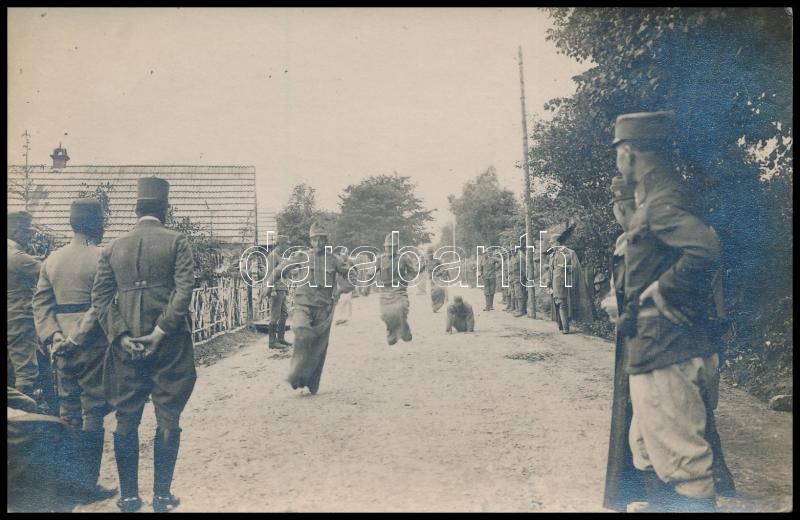 cca 1914-1916 Katonák zsákban futó versenyt rendeznek a fronton. fotól... https://www.darabanth.com/de/331-Fernauktion/331.0/Andere-Sammelgebiete/Militaria~500027/cca-1914-1916-Katonak-zsakban-futo-versenyt-rendeznek-a-fronton-fotolap-Soldiers-running-in-s~II1846000
