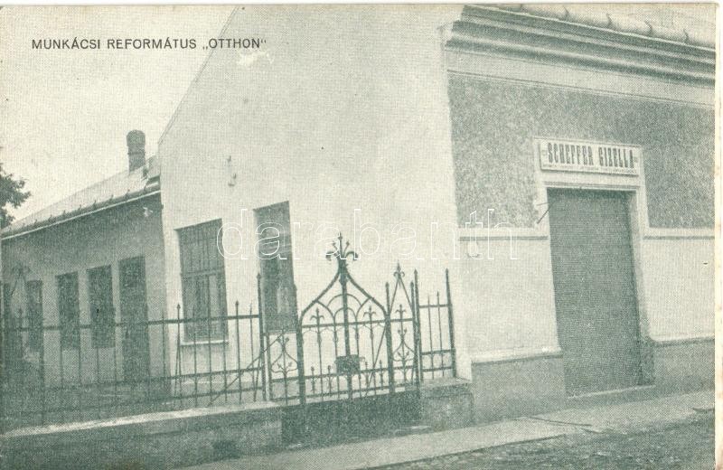 Beschreibung: Munkács, Mukacheve; Református otthon, Scheffer Gizella üzlete / Calvinist home, shop