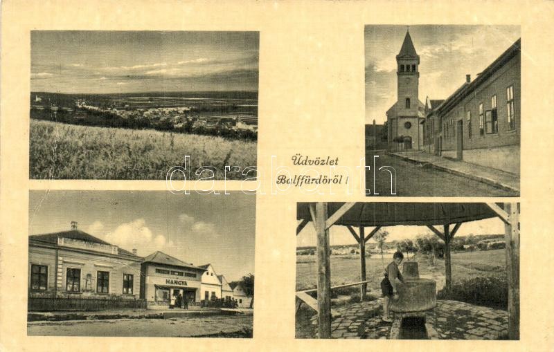 Balf (Sopron), Fürdő, Hangya szövetkezet üzlete, Evangélikus templom, ... https://www.darabanth.com/de/331-Fernauktion/331.0/Ansichtskarten/Ungarn~2000005/Balf-Sopron-Furdo-Hangya-szovetkezet-uzlete-Evangelikus-templom-kut-EK~II1849683