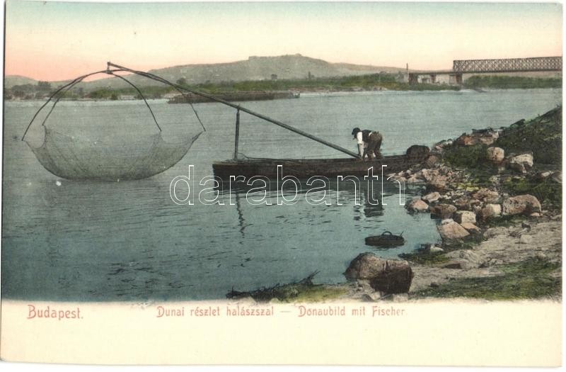 Budapest IV. Dunai részlet, halász a csónakban halászhálóval, újpesti ... https://www.darabanth.com/de/331-Fernauktion/331.0/Ansichtskarten/Ungarn~2000005/Budapest-IV-Dunai-reszlet-halasz-a-csonakban-halaszhaloval-ujpesti-vasuti-osszekoto-hC3~II1848818