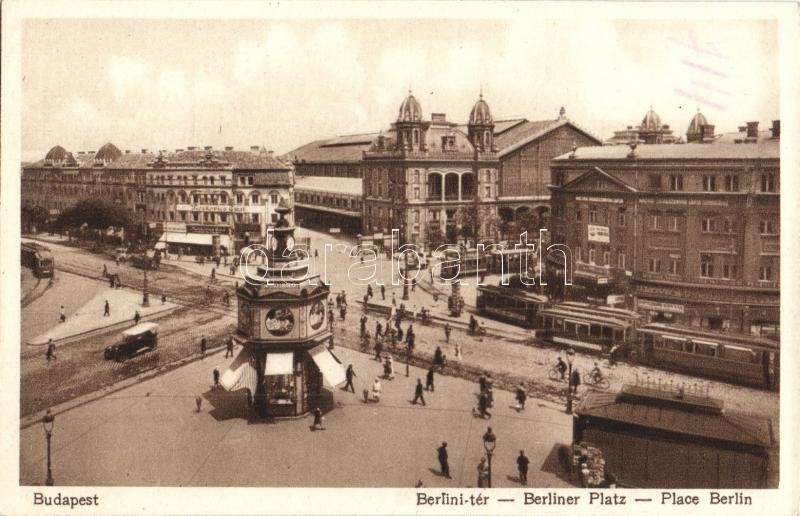 Budapest VI. Berlini tér (Nyugati pályaudvar), villamosok, automobil, ... https://www.darabanth.com/de/331-Fernauktion/331.0/Ansichtskarten/Ungarn~2000005/Budapest-VI-Berlini-ter-Nyugati-palyaudvar-villamosok-automobil-Ilkovics-vendeglo-es-ett~II1847396