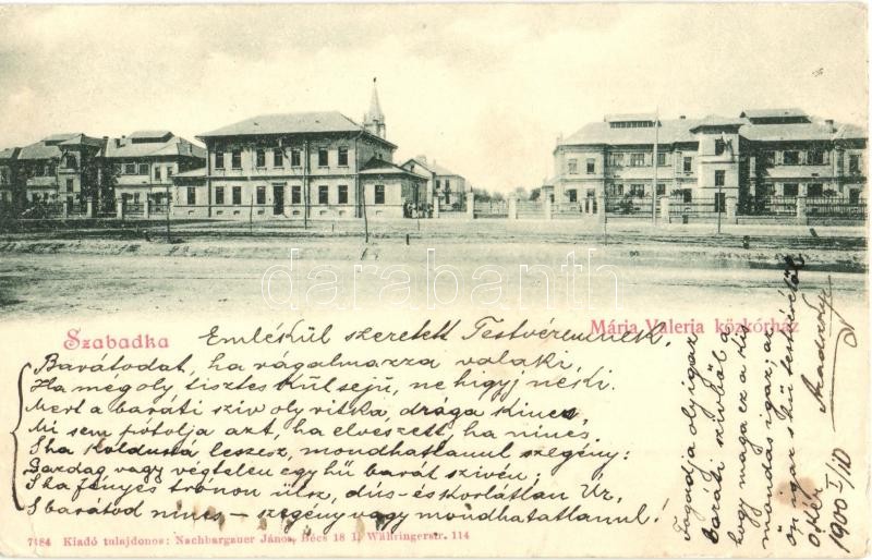 Beschreibung: 1900 Szabadka, Subotica; Mária Valéria kórház. Kiadja Nachbargauer János / hospital (EK)