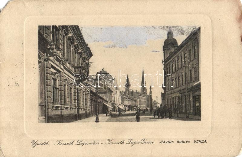 Beschreibung: Újvidék, Novi Sad;, Kossuth Lajos utca, bútor áruház. W.L. Bp. 4240. / street view with furniture shop (EM)