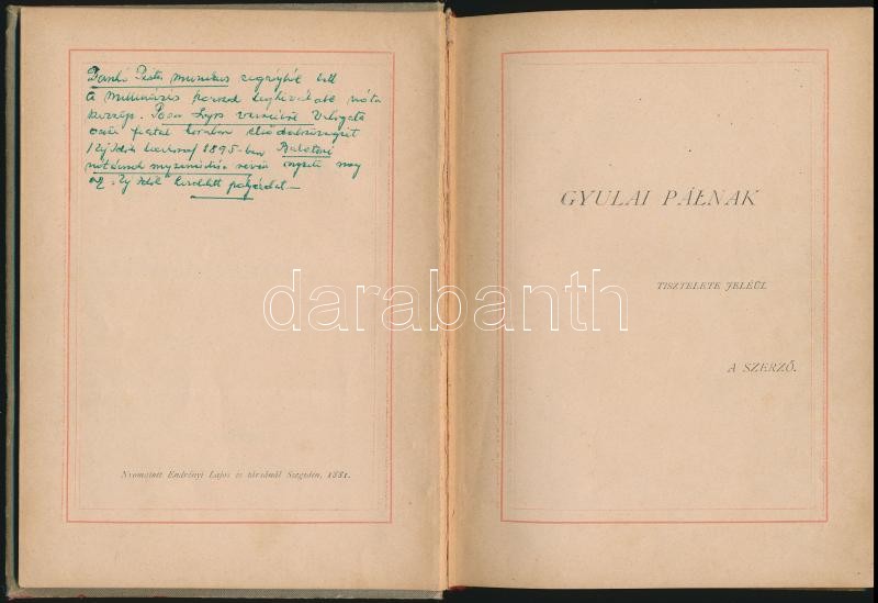 Pósa Lajos: Ujabb költemények. Bp., 1881, Grimm Gusztáv, (Szeged, Endr... https://www.darabanth.com/de/331-Fernauktion/331.0/Bucher/Bucher-Andere-kuriositaten~1500018/Posa-Lajos-Ujabb-koltemenyek-Bp-1881-Grimm-Gusztav-Szeged-Endrenyi-Lajos-es-tarsa-ny~II1846979