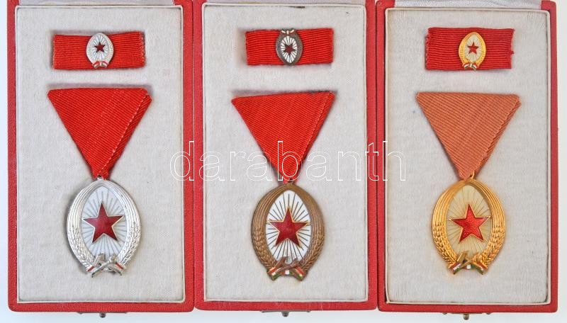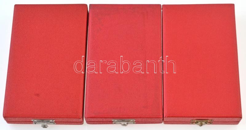1964. "A Munka Érdemrend" arany fokozata, aranyozott, zománcozott Br kitüntetés szalagon, miniatűrrel és szalagsávval, tokban + "A Munka Érdemrend" ezüst fokozata, ezüstözött, zománcozott Br kitüntetés szalagon, miniatűrrel és szalagsávval, tokban + "A Munka Érdemrend" bronz fokozata, zománcozott Br kitüntetés szalagon, miniatűrrel és szalagsávval, tokban T:1-,2