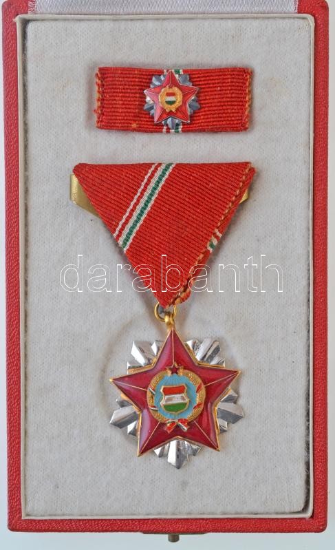 Beschreibung: 1966. "Szocialista Hazáért Érdemrend" zománcozott Br kitüntetés mellszalaggal és szalagsávval dísztokban T:2 NMK 711