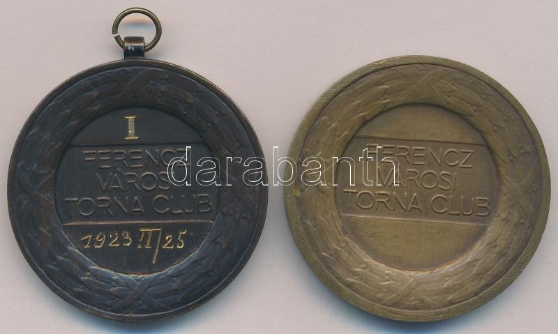 Beschreibung: Berán Lajos (1882-1943) ~1920. "Ferencz Városi Torna Club" Br sportérem (2x) egyik füllel és a hátoldalán gravírozással (40mm) T:2,2-