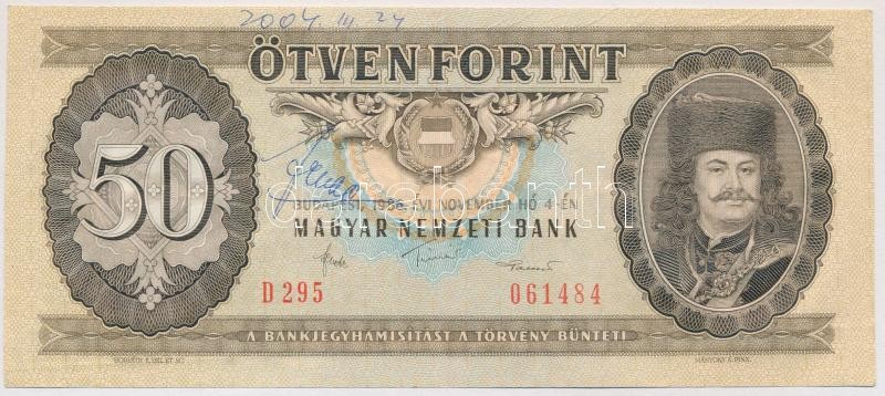 Beschreibung: 1986. 50Ft Fekete János, az Magyar Nemzeti Bank elnökhelyettesének szignójával T:III