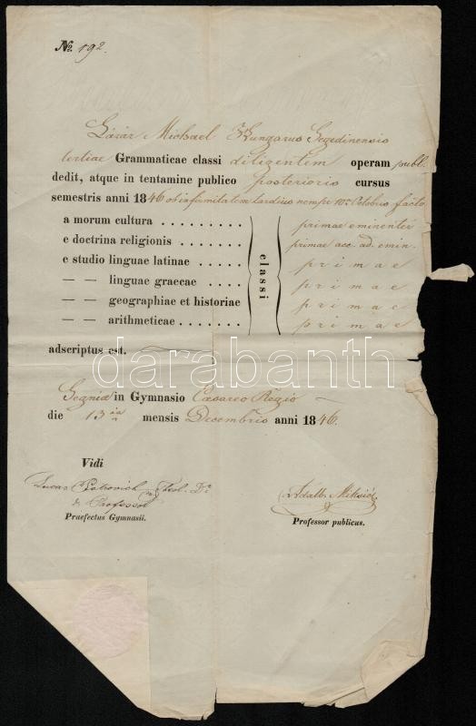 1846-47 Zenggi gimnázium bizonyítványai magyar személy részére 4 db / ... https://www.darabanth.com/de/332-Fernauktion/332.0/Andere-Sammelgebiete/Dokument~500018/1846-47-Zenggi-gimnazium-bizonyitvanyai-magyar-szemely-reszere-4-db-School-certificates-for-~II1859464