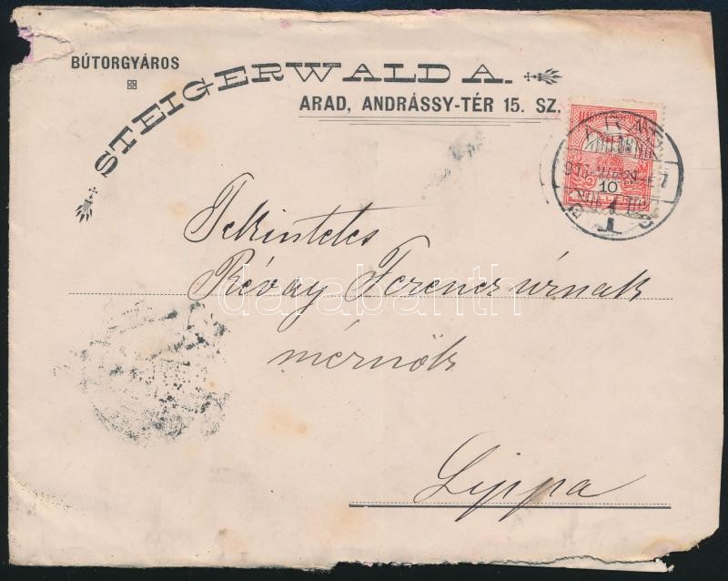 Beschreibung: 1916 Arad, Steigerwald A. bútorgyáros számlája borítékkal