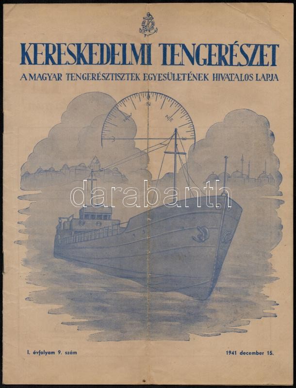 1941 Kereskedelmi tengerészet. I. évf. 9. sz. 1941. dec. 15. Szerk.: Piller Vilmos. Bp., Magyar Tengerésztisztek Egyesülete, (Máté Ernő-ny.), 16 p. Papírkötés, a címlapon és az első lapon hiánnyal.
