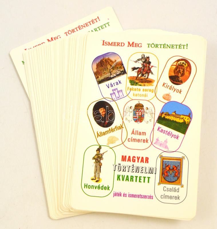 Magyar történelmi kvartett, 34 lapos játékkártya pakli, jó állapotban https://www.darabanth.com/de/332-Fernauktion/332.0/Andere-Sammelgebiete/Flohmarkt~500011/Magyar-tortenelmi-kvartett-34-lapos-jatekkartya-pakli-jo-allapotban~II1852949