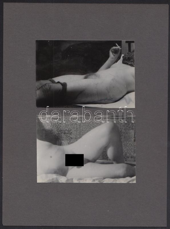 Beschreibung: Pornográf fotók, 2 db, albumlapra ragasztva, 6,5×9,5 cm