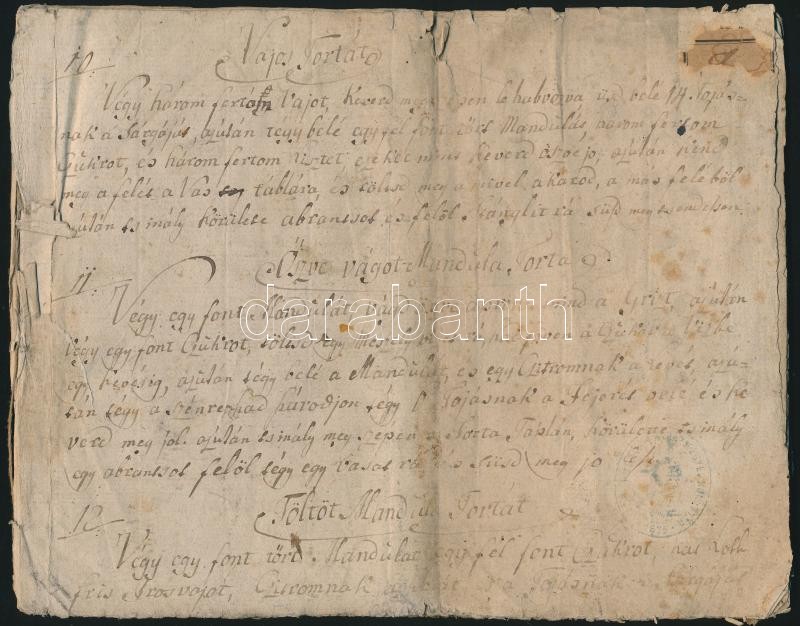 cca 1780 Kézzel írt receptgyűjtemény. 30 kézzel beírt oldalon 26x21 cm... https://www.darabanth.com/de/332-Fernauktion/332.0/Andere-Sammelgebiete/Historische-Dokumenten-Handschriften~500019/cca-1780-Kezzel-irt-receptgyujtemeny-30-kezzel-beirt-oldalon-26x21-cm-Elso-lap-piszkos~II1852793