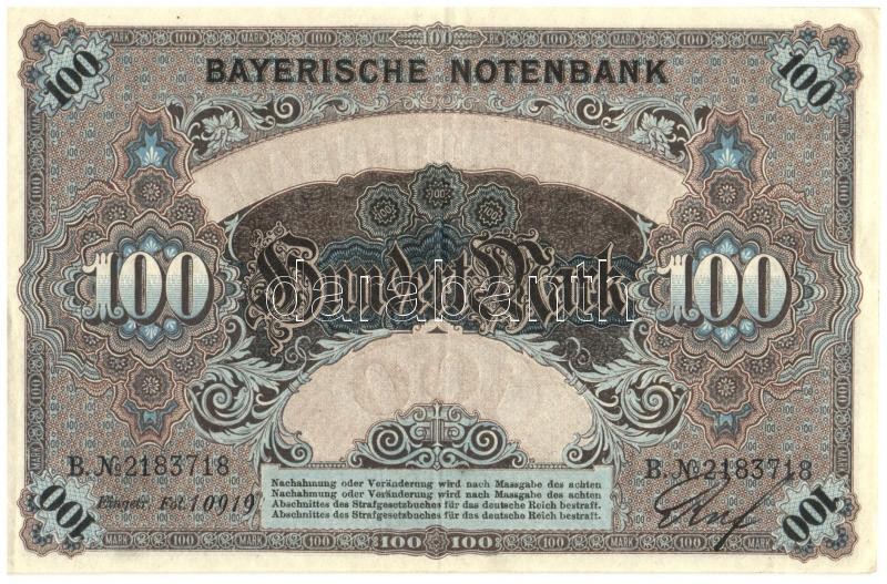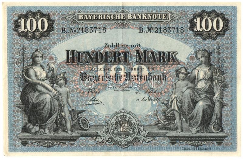 Német Birodalom / Bajorország 1900. 100M vízjeles papíron T:III szép papír / German Empire / Bavaria 1900. 100 Mark on watermarked paper C:F fine paper