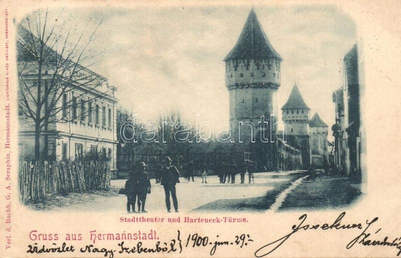 1900 Nagyszeben, Hermannstadt, Sibiu; Színház, Harteneck utca és toron... https://www.darabanth.com/de/333-Fernauktion/333.0/Ansichtskarten/Siebenburgen~1000006/1900-Nagyszeben-Hermannstadt-Sibiu-Szinhaz-Harteneck-utca-es-torony-Kiadja-G-A-Seraphin-J~II1861718