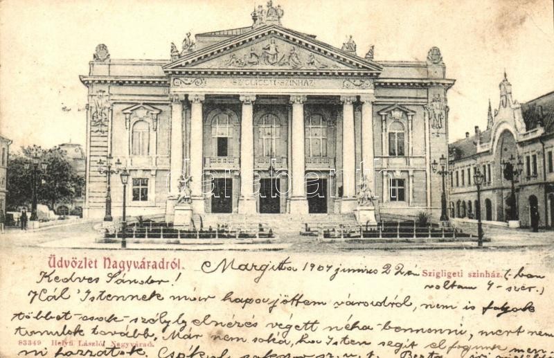 1904 Nagyvárad, Oradea; Szigligeti színház. Kiadja Helyfi László / the... https://www.darabanth.com/de/333-Fernauktion/333.0/Ansichtskarten/Siebenburgen~1000006/1904-Nagyvarad-Oradea-Szigligeti-szinhaz-Kiadja-Helyfi-Laszlo-theater-EK~II1863424