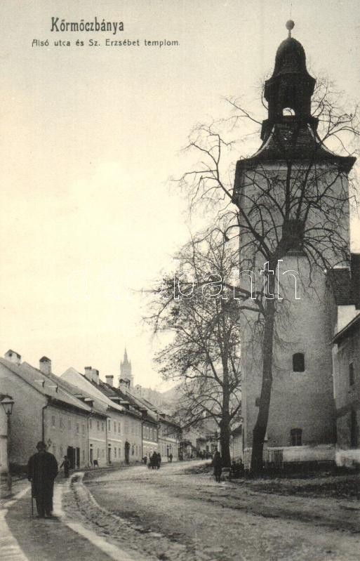 Körmöcbánya, Kremnitz, Kremnica; Alsó utca és Szent Erzsébet templom. ... https://www.darabanth.com/de/333-Fernauktion/333.0/Ansichtskarten/Slowakei~1000007/Kormocbanya-Kremnitz-Kremnica-Also-utca-es-Szent-Erzsebet-templom-Kiadja-Ritter-Lipot-J-~II1866000