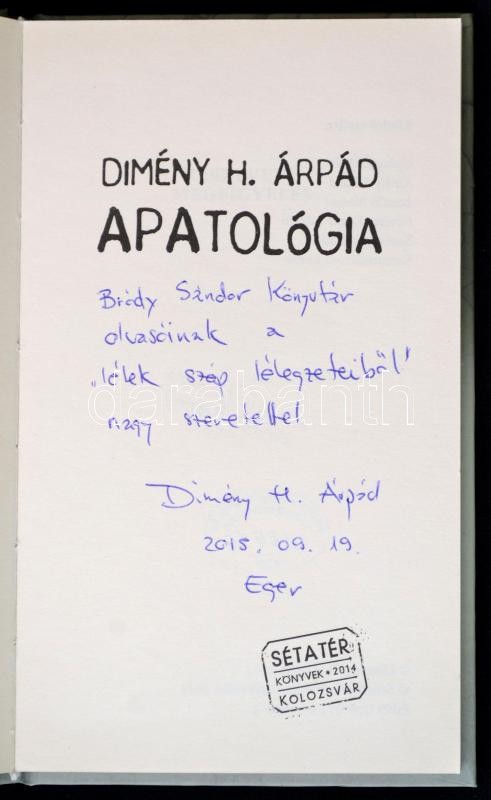 Demény H. Árpád: Apatológia. Dedikált! Eger., 2018. https://www.darabanth.com/de/333-Fernauktion/333.0/Bucher/Bucher-Andere-kuriositaten~1500019/Demeny-H-Arpad-Apatologia-Dedikalt-Eger-2018~II1860640